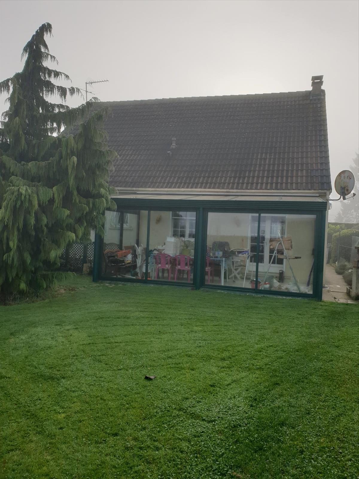 Disponible fin avril, avec jardin clôturé d'env 500m², pavillon individuel de plain-pied 72m² comp : entrée, salon/séjour avec cheminée insert, cui...
