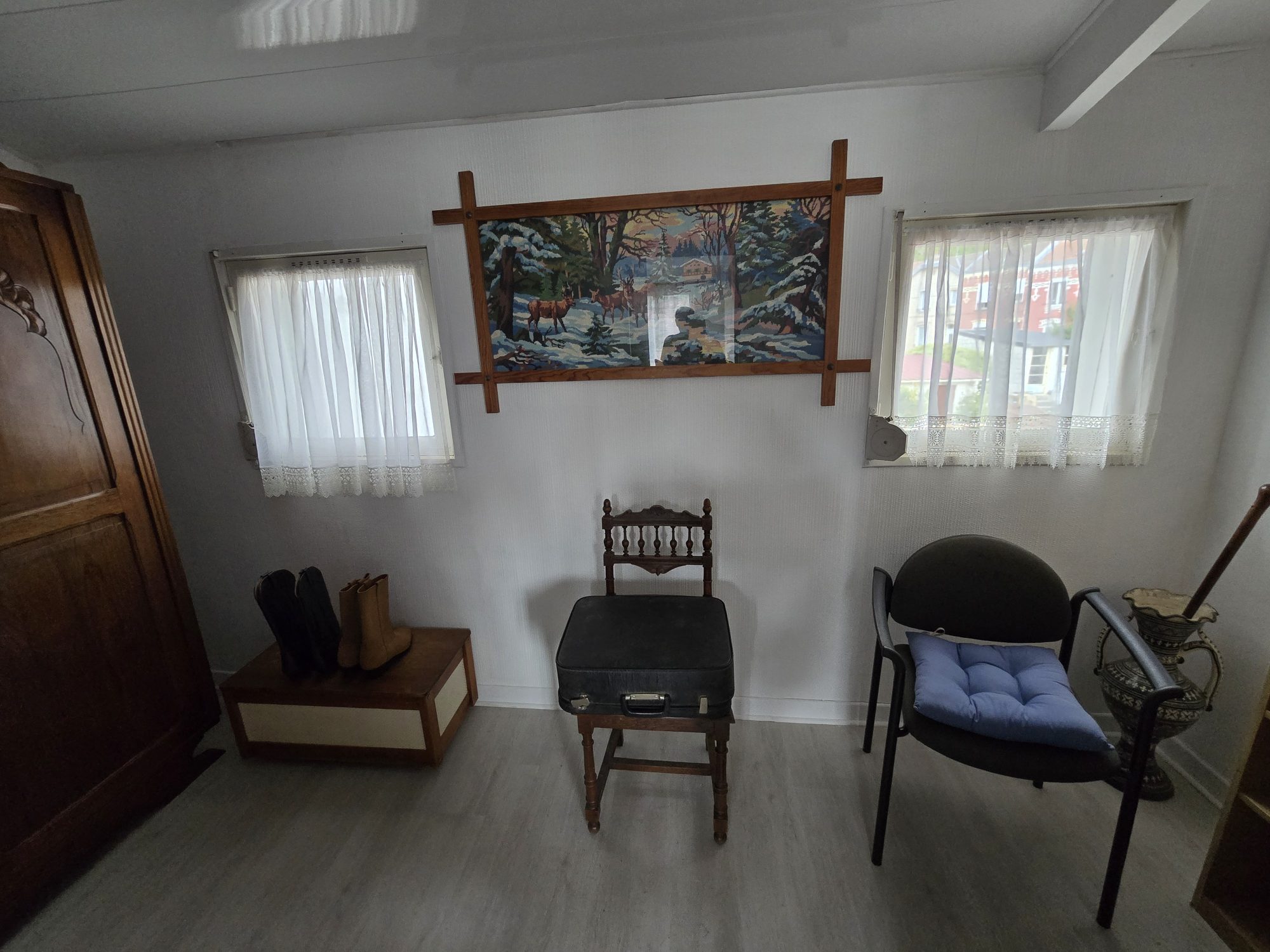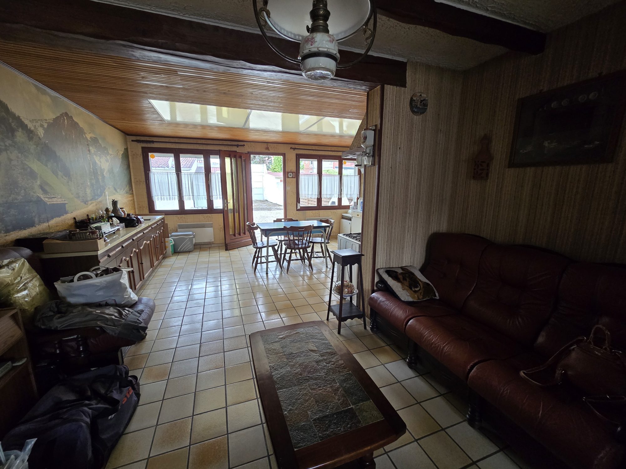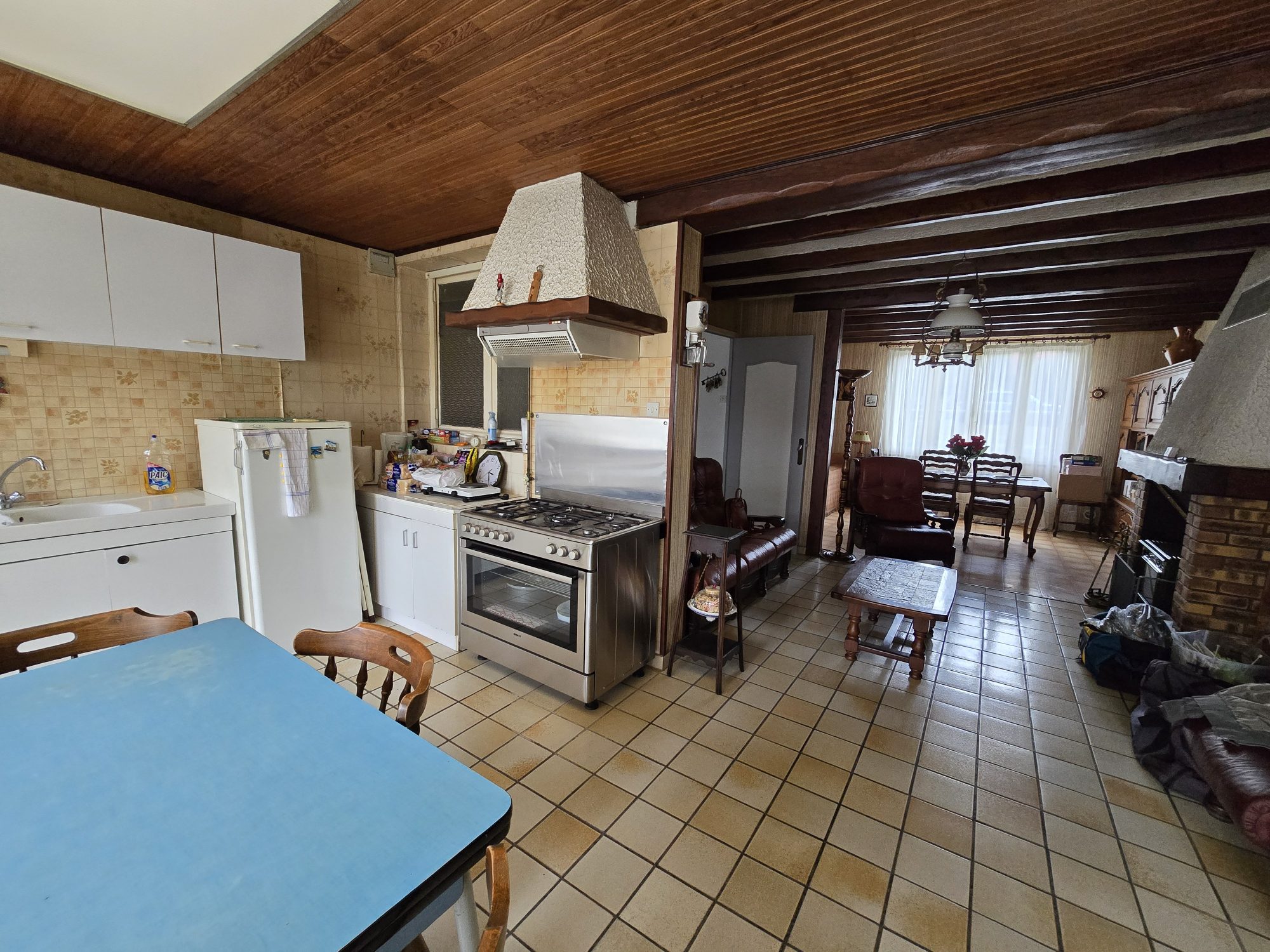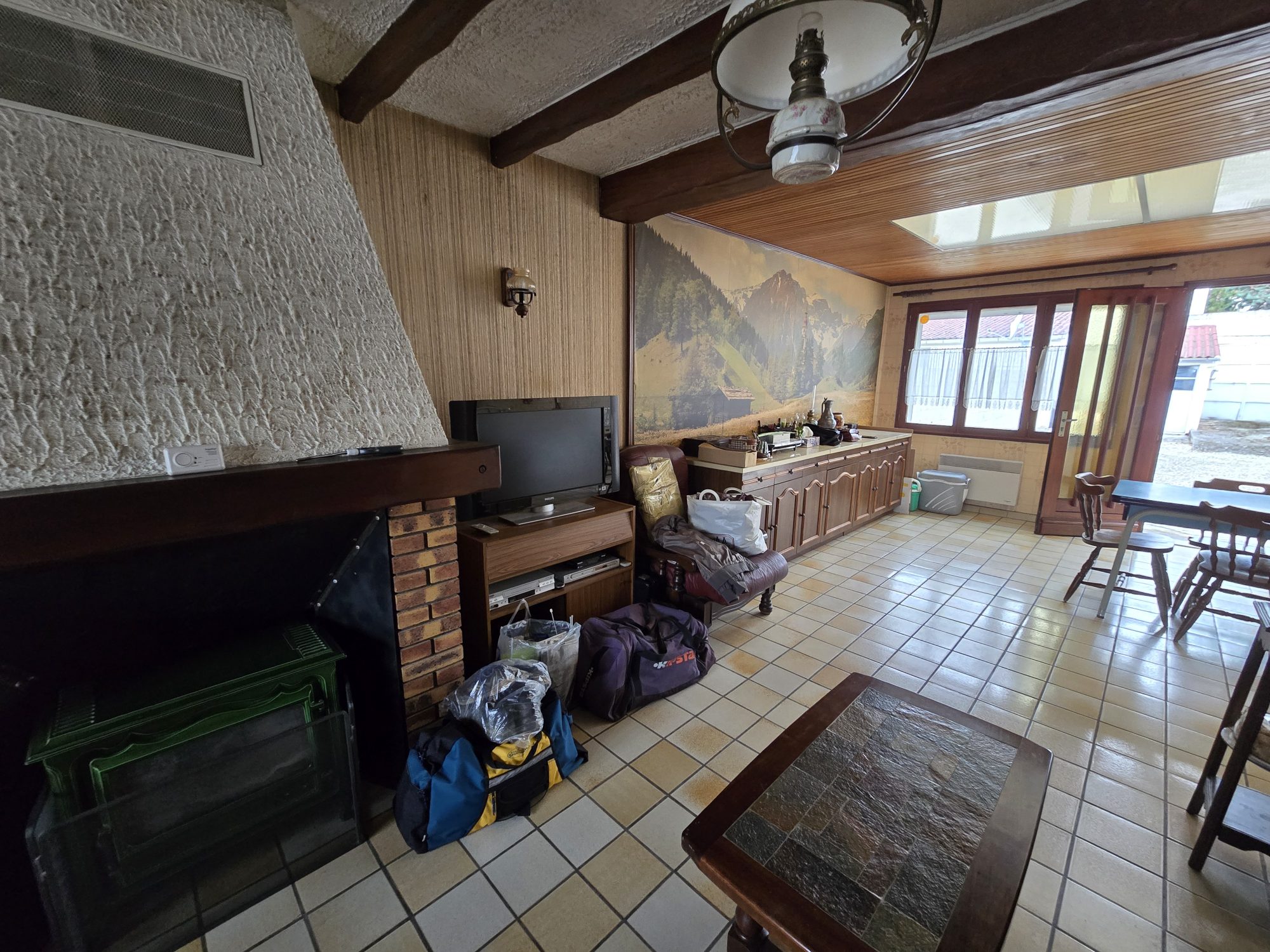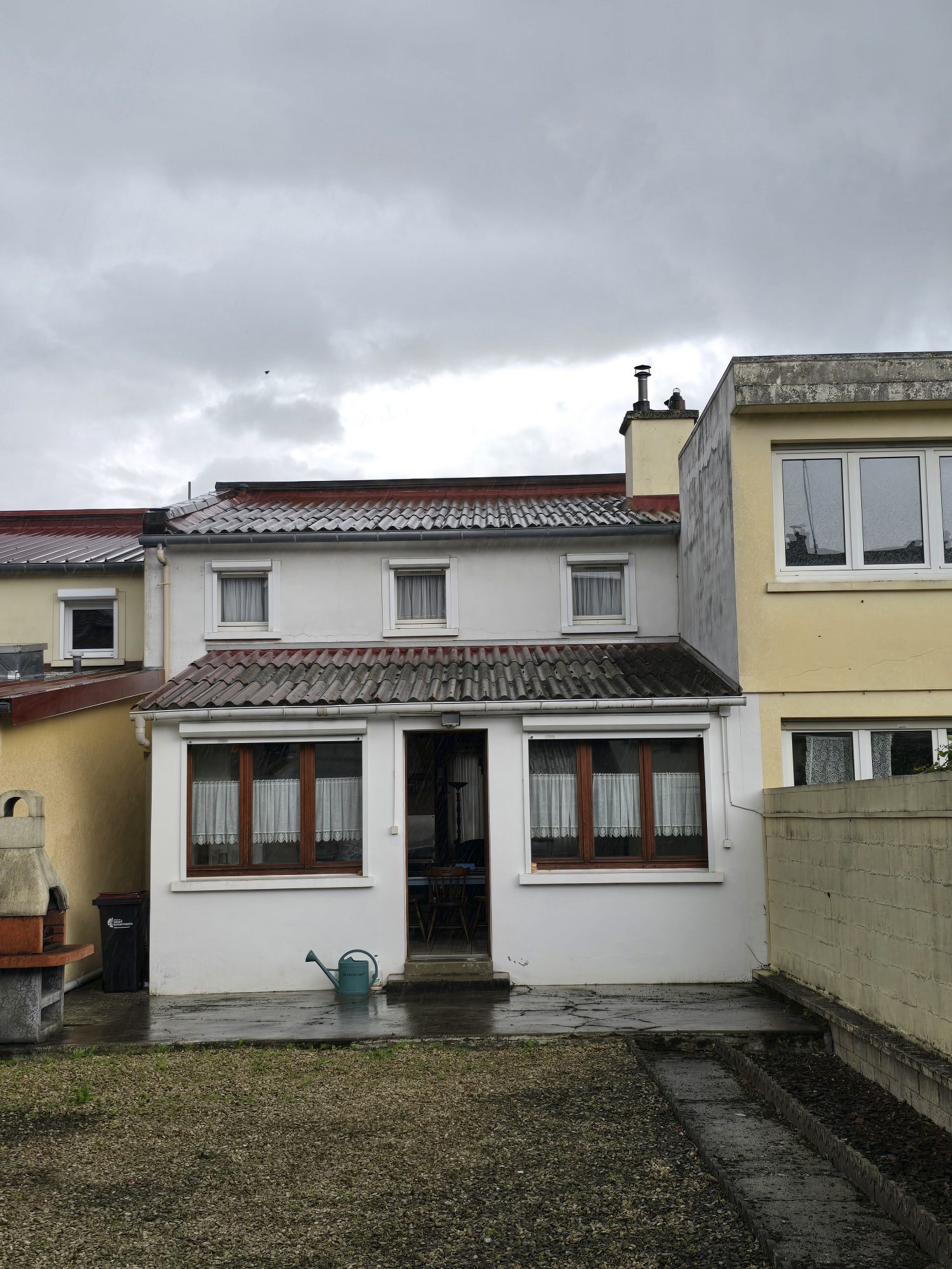 Au rez-de-chaussée : entrée, salon-séjour, cuisine sous agrandissement, salle d'eau, wc.