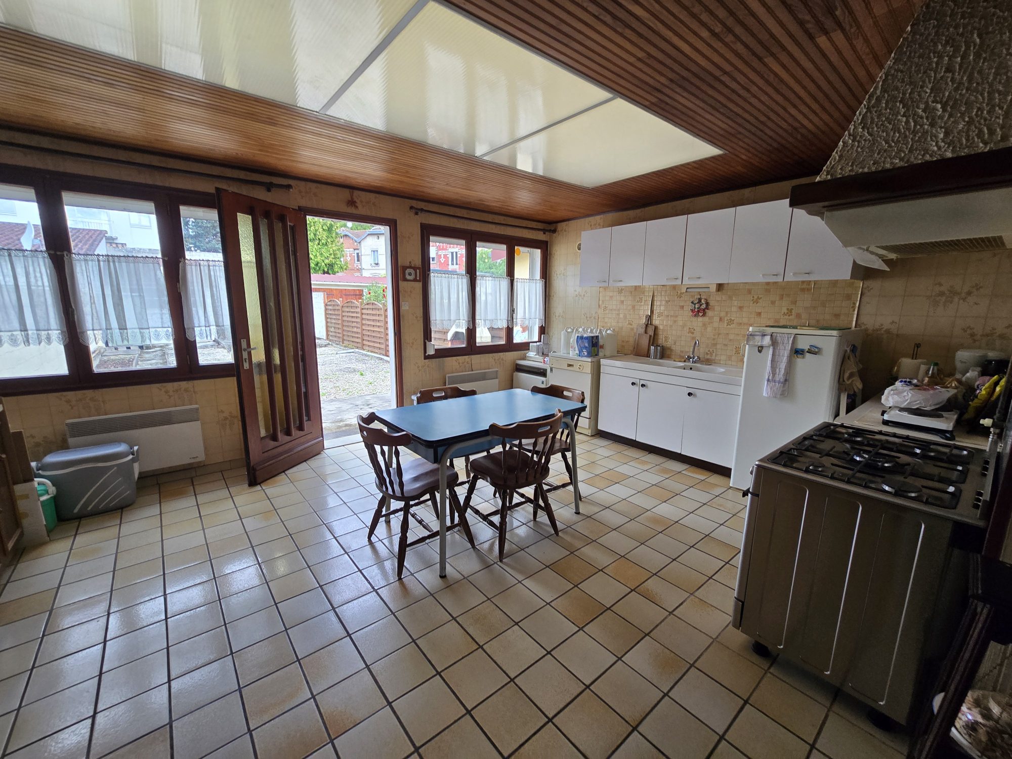 Chauffage électrique et bois, garage, stationnements, jardin.