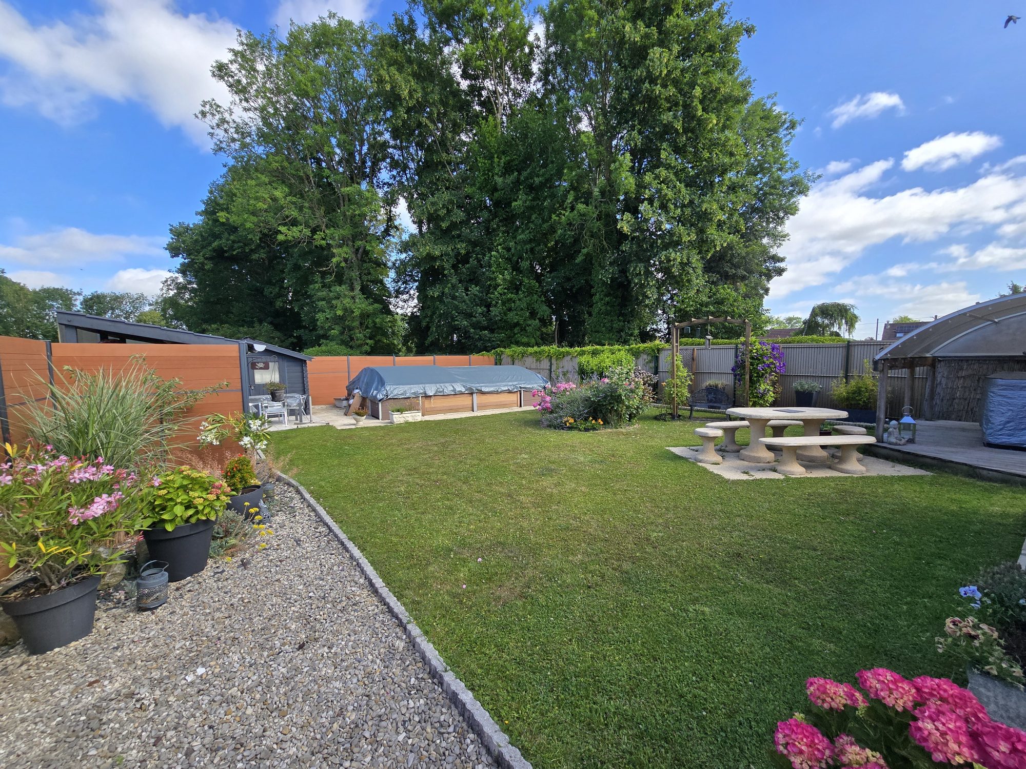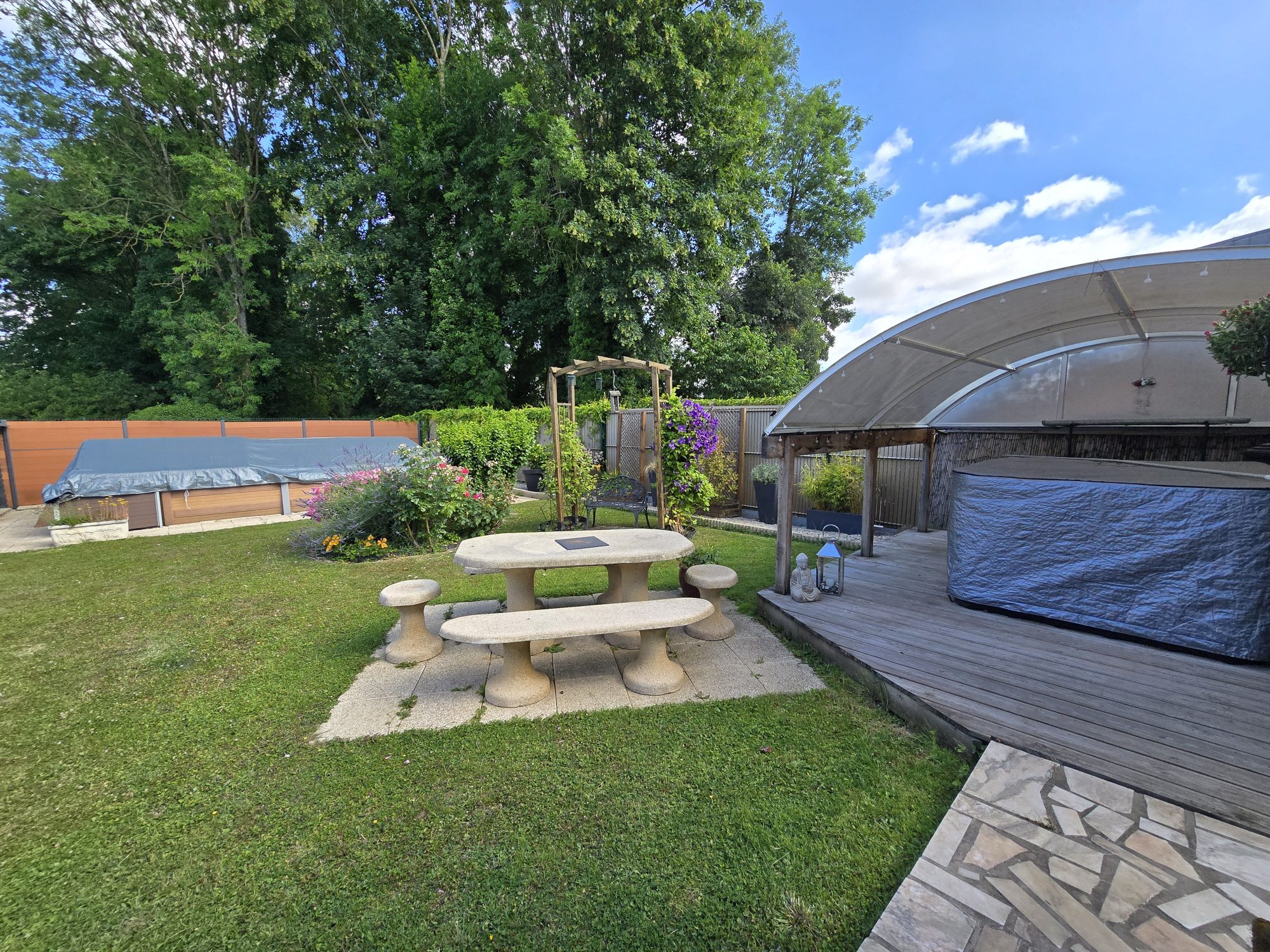 Jardin avec piscine et SPA.