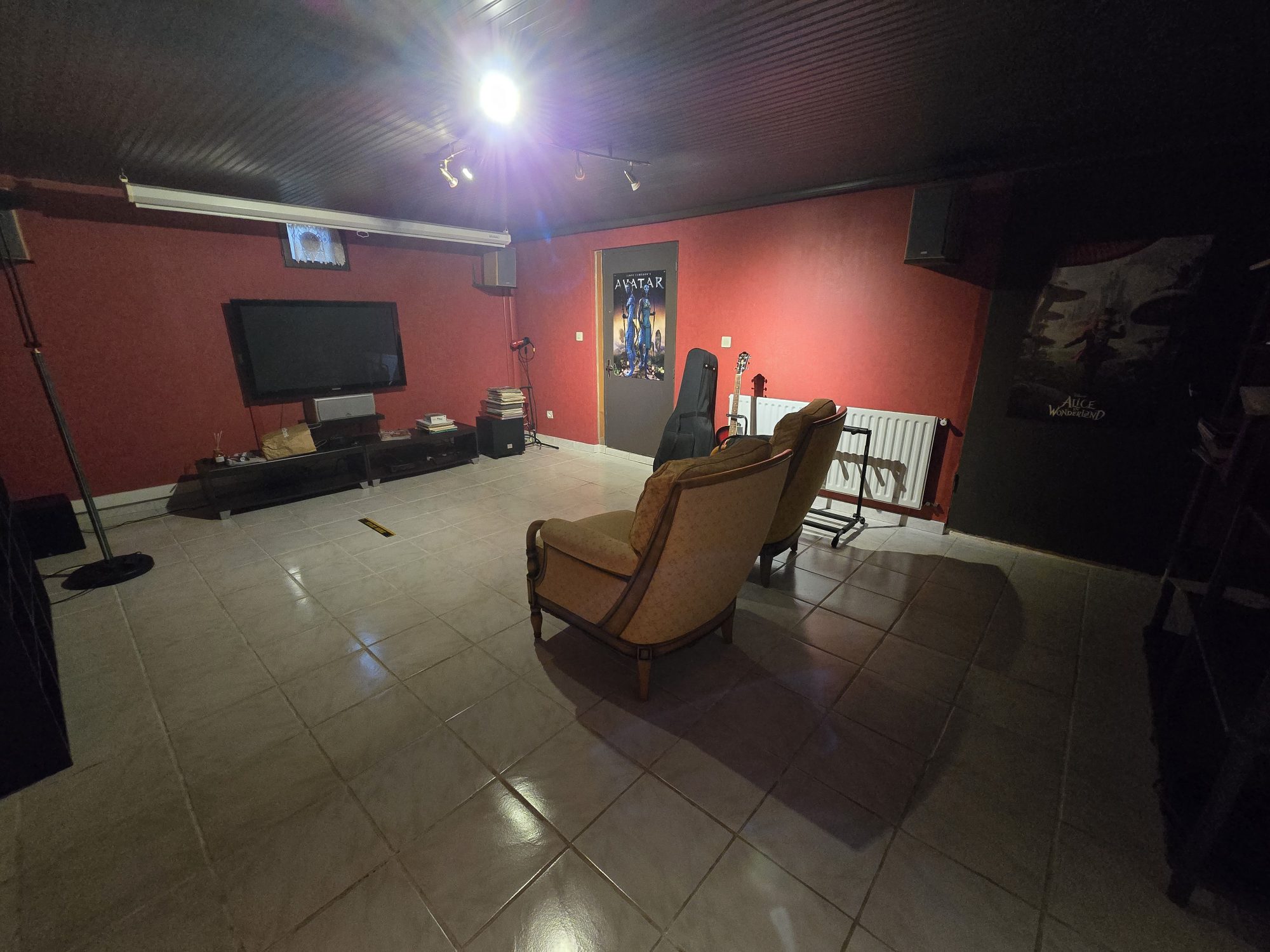 Au sous-sol : salle cinéma aménagée.