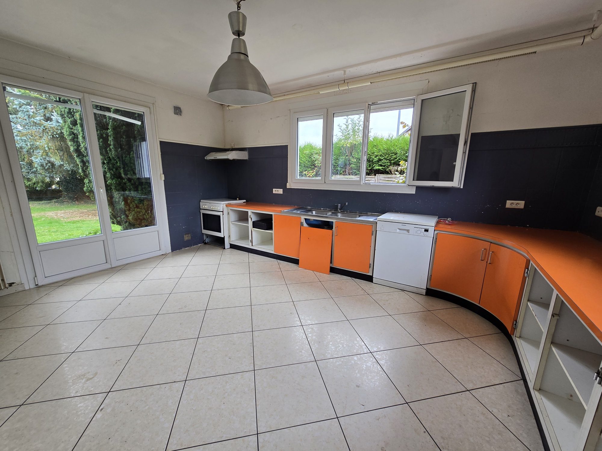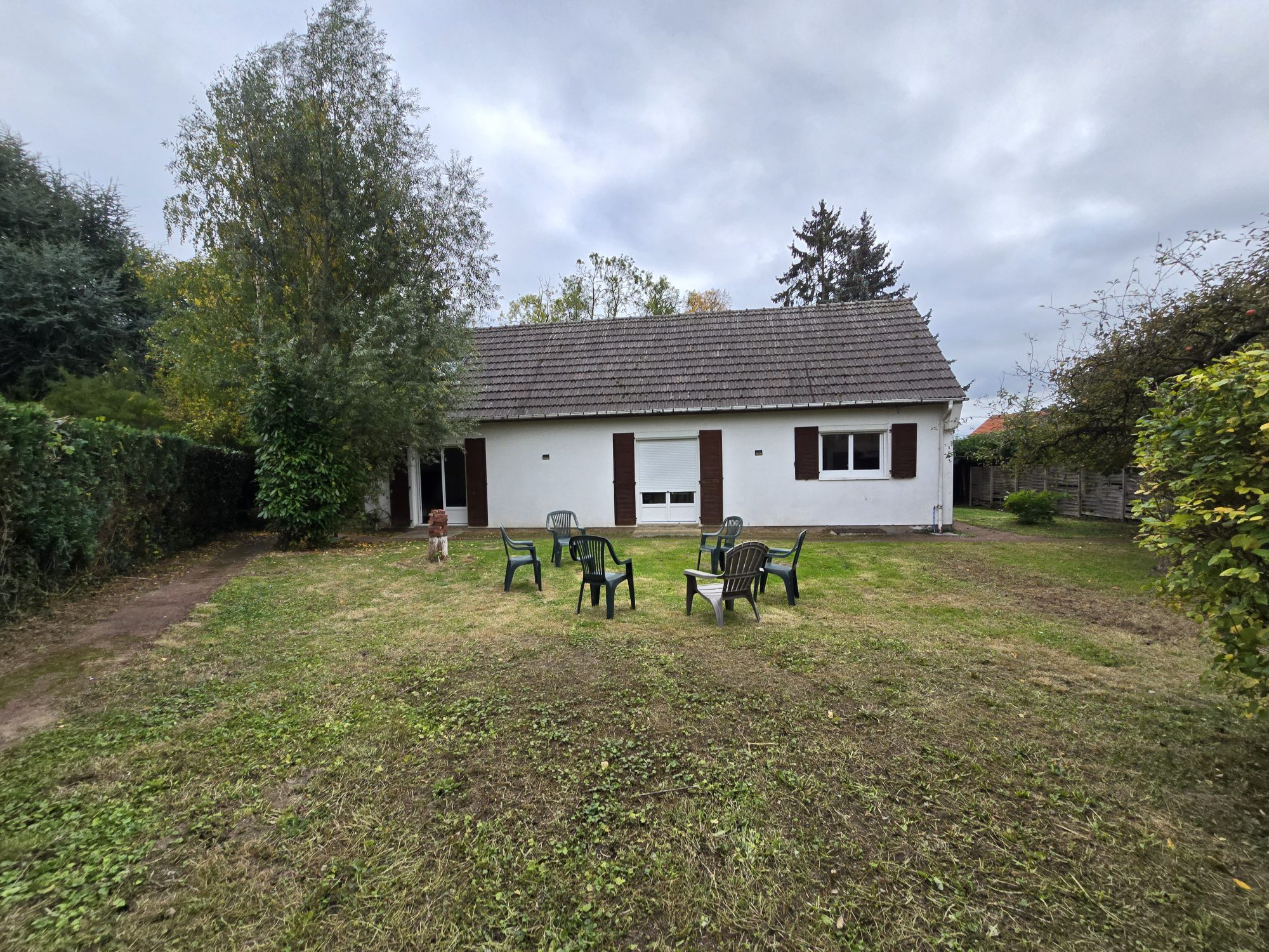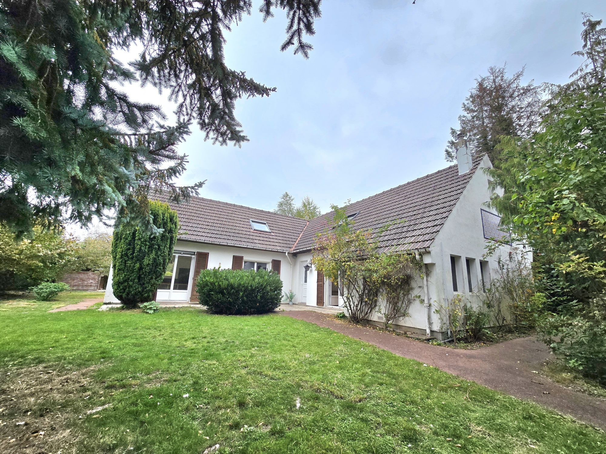 Terrasse, grand jardin, stationnements.