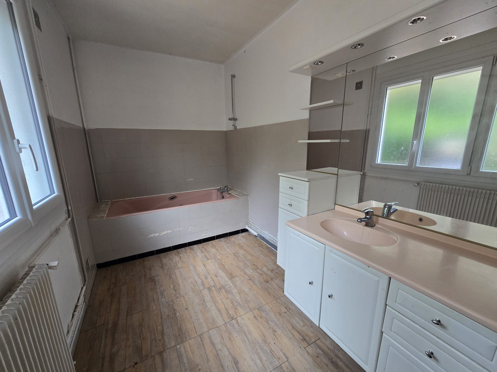 Entrée, salon-séjour lumineux, grande cuisine, une chambre, salle de bains, wc.