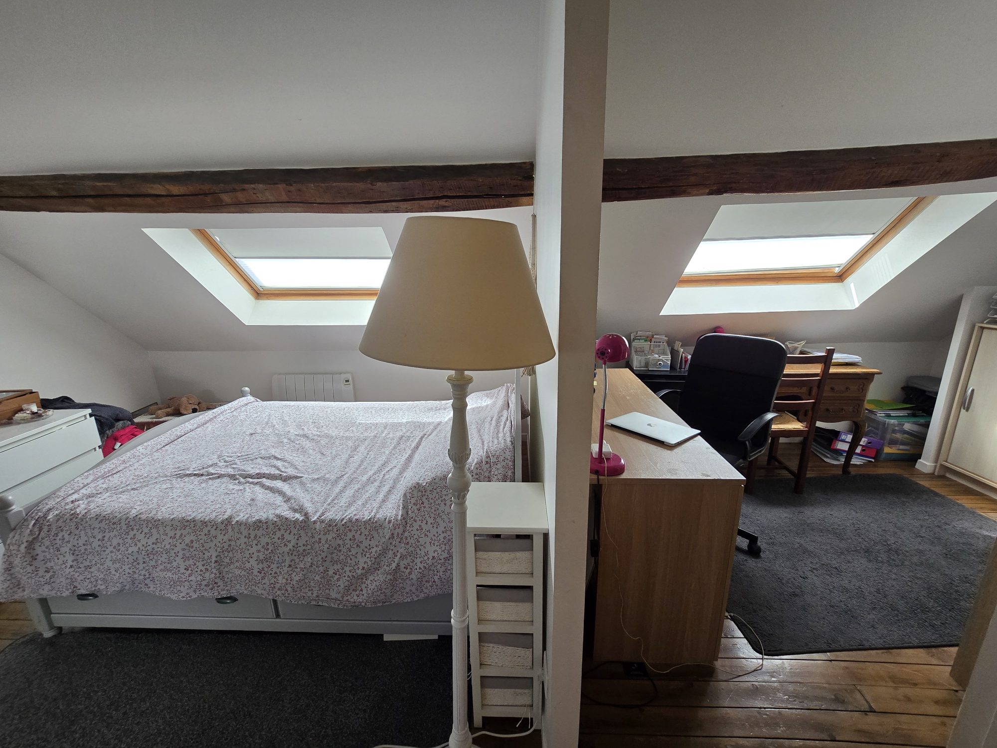 Au 2eme étage : palier, deux chambres dont une avec salle d'eau et wc, bureau.