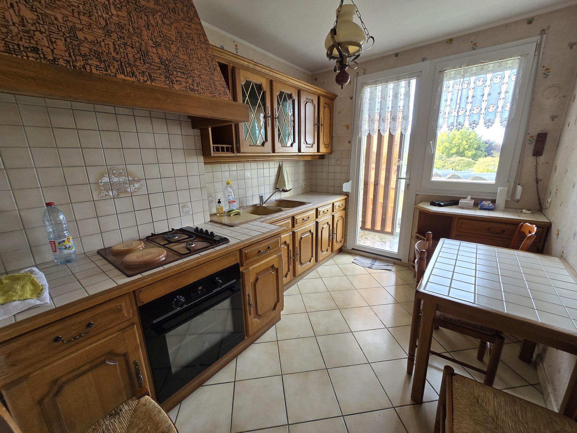Grande entrée avec placard, wc, séjour - salon avec balcon, cuisine équipé...