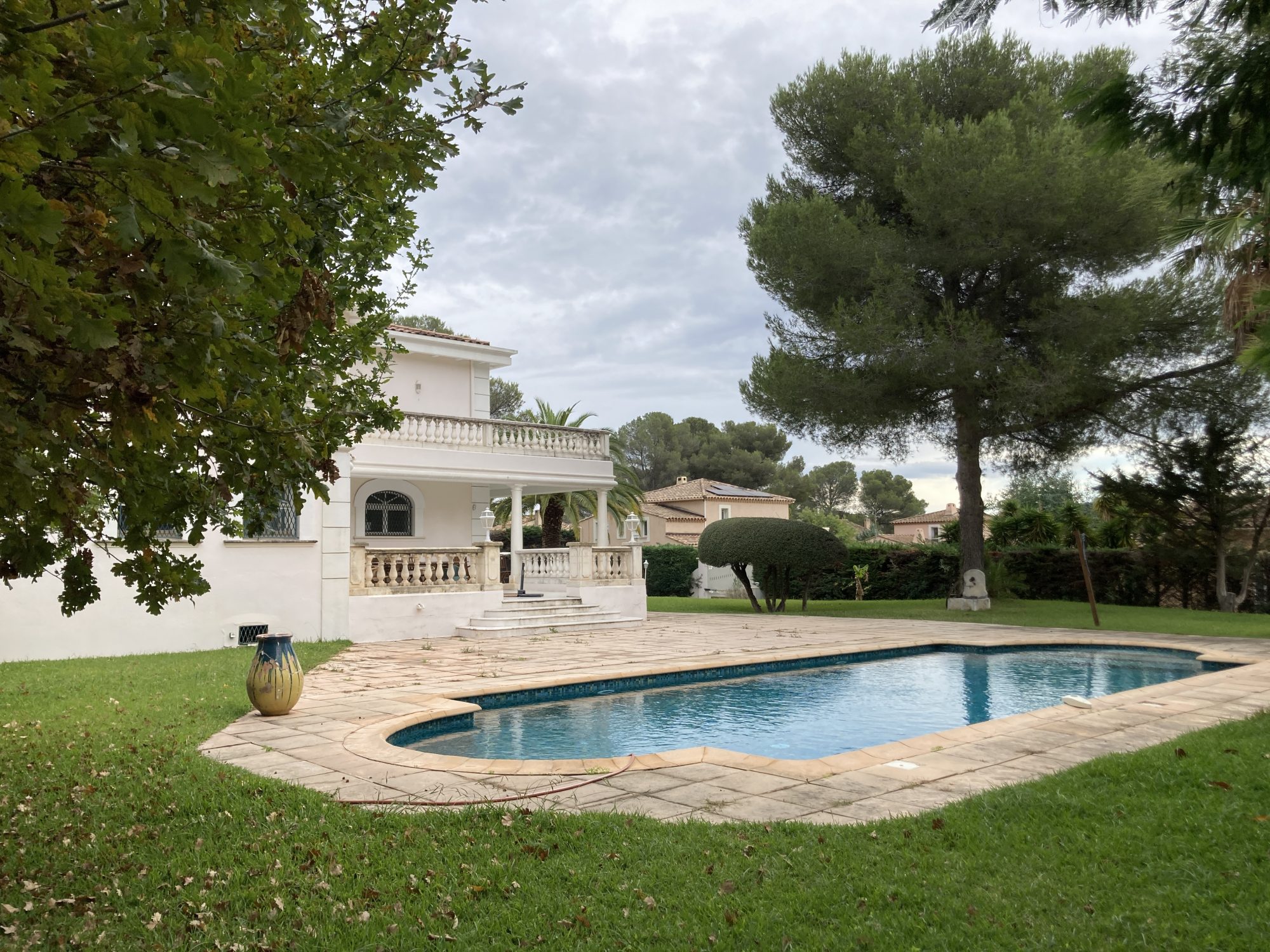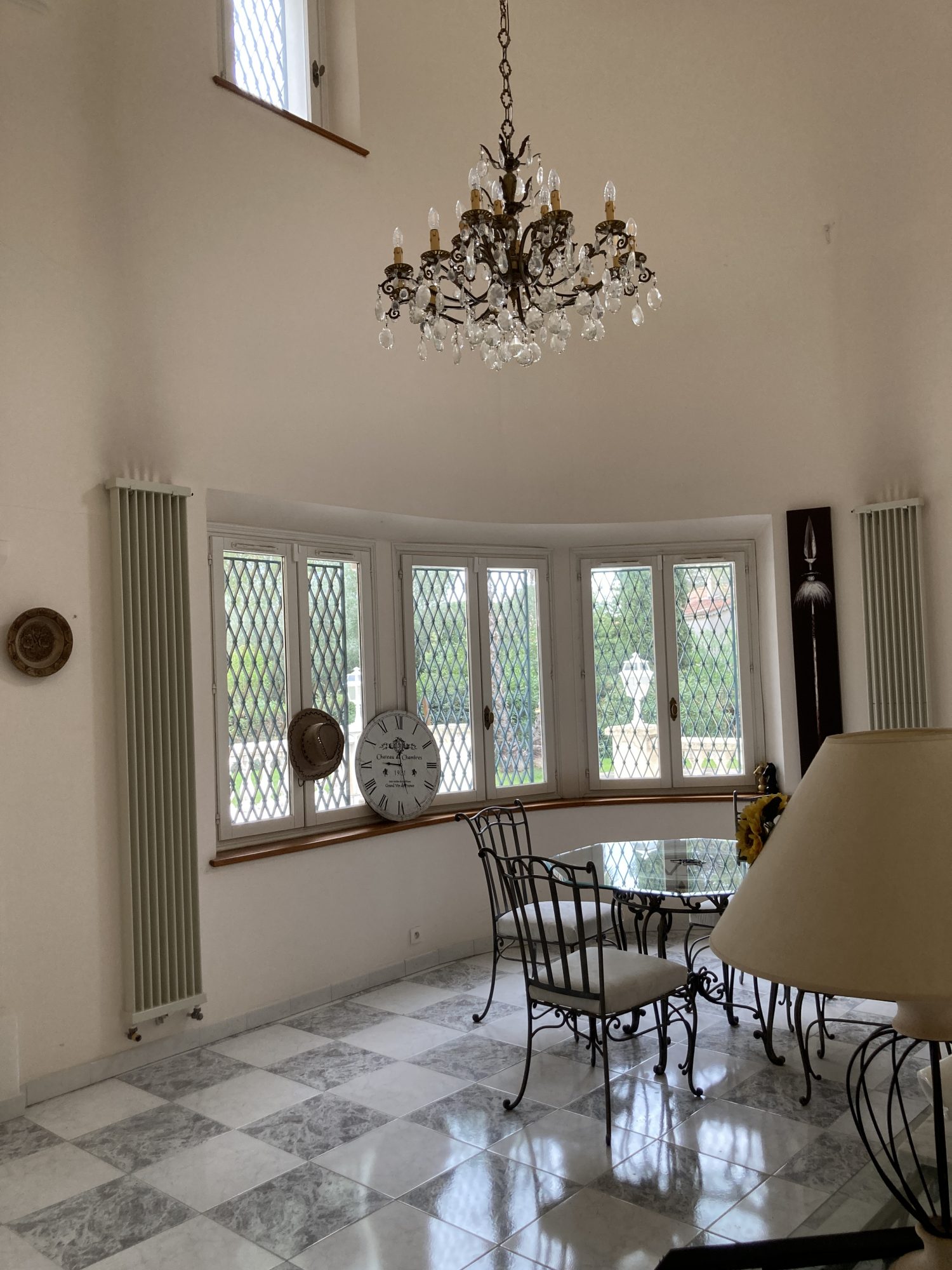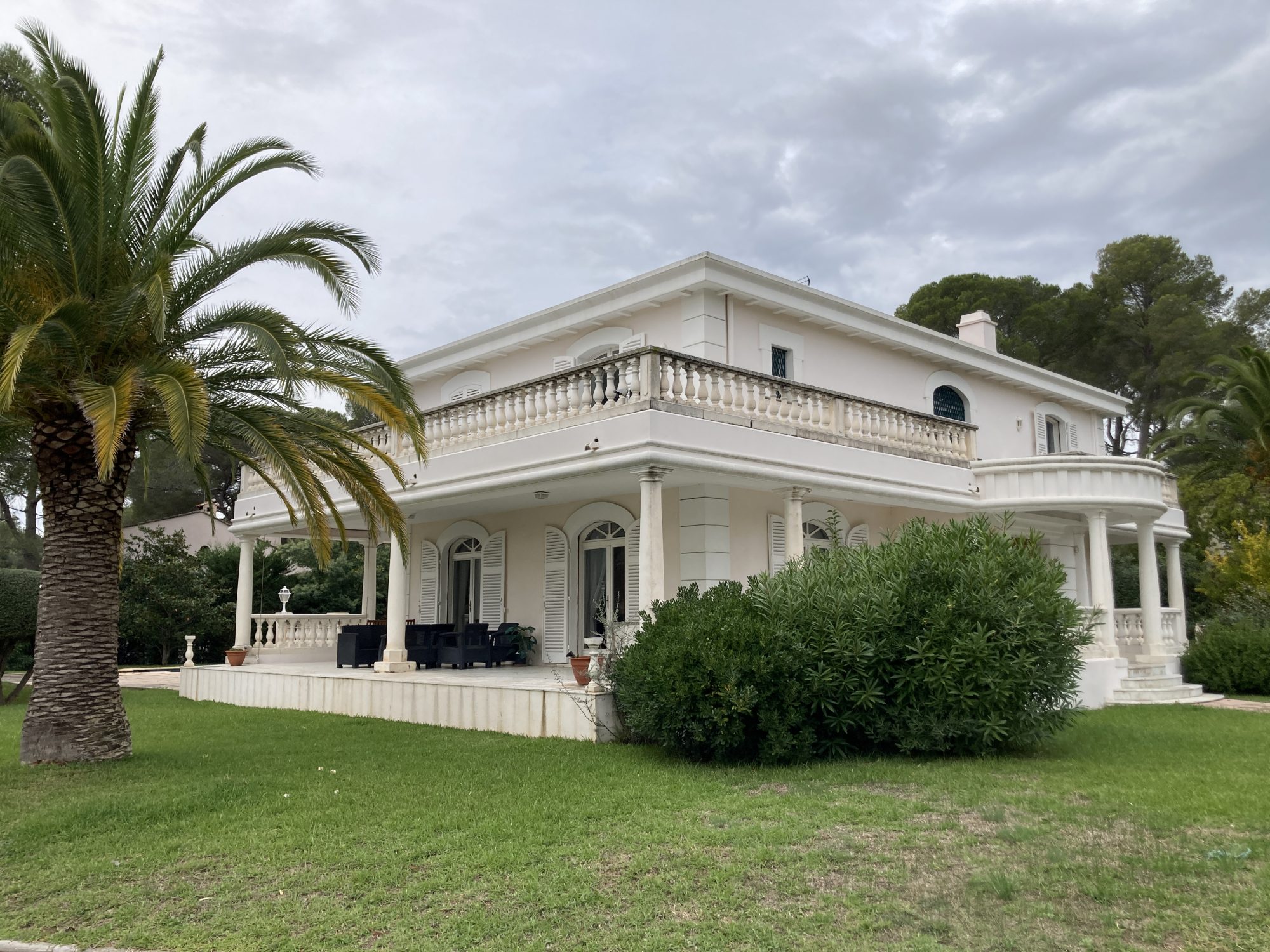 A vendre en immo-interactif, magnifique villa de 262m² habitable dans un parc arboré avec piscine. Située 641 avenue de Boulouris à SAINT RAPHAEL, cette maison de 1990 sur sous-sol comprend un grand hall d'entrée, salon et salle à manger, grande cuisine équipée, lingerie, une chambre avec salle d'eau, un bureau (ou chambre), WC au rez-de-chaussée.