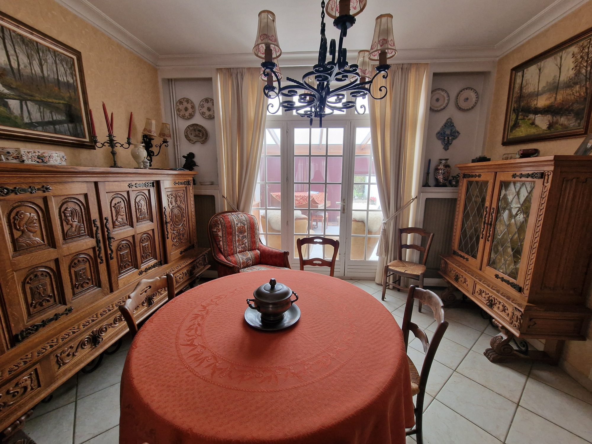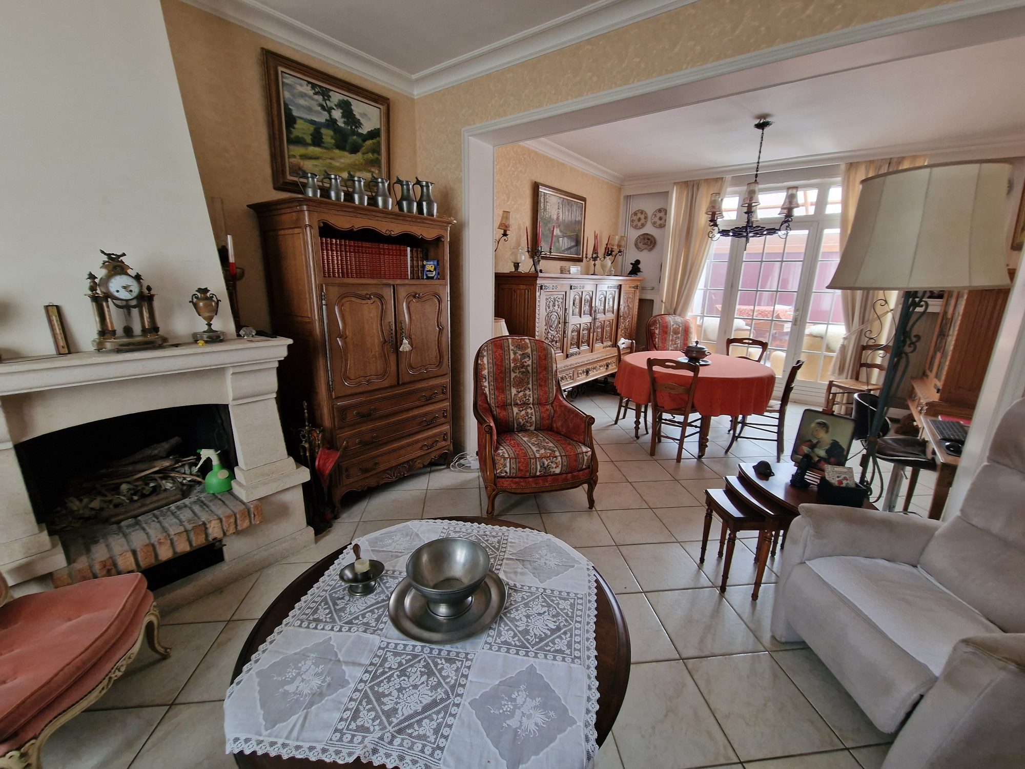 Au rez-de-chaussée : entrée, salon-séjour, cuisine, wc, grande véranda avec wc, deux pièces sous aggrandissement avec point d'eau.
