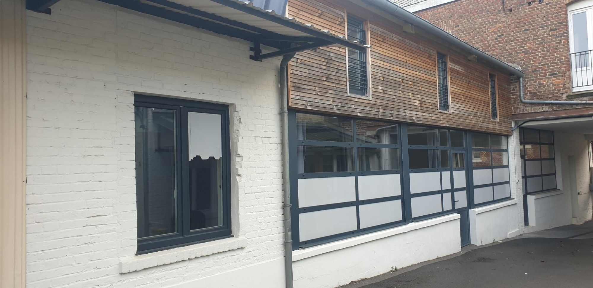 Disponible de suite, local comprenant un entrepôt (garage) de 40m² + mezzanine, deux bureaux adjacents de 15 m² chacun, WC avec lave-mains. Avec 2...
