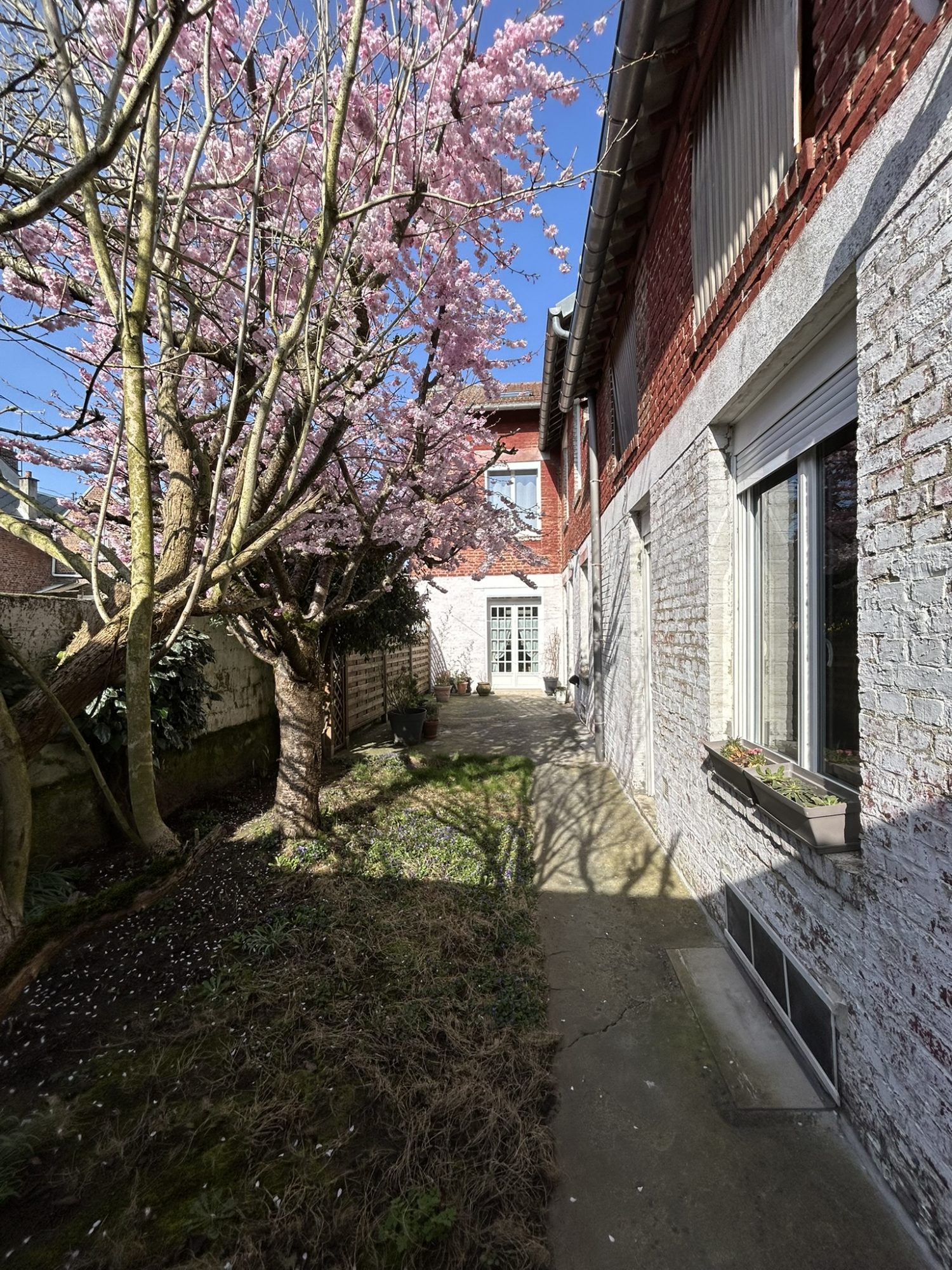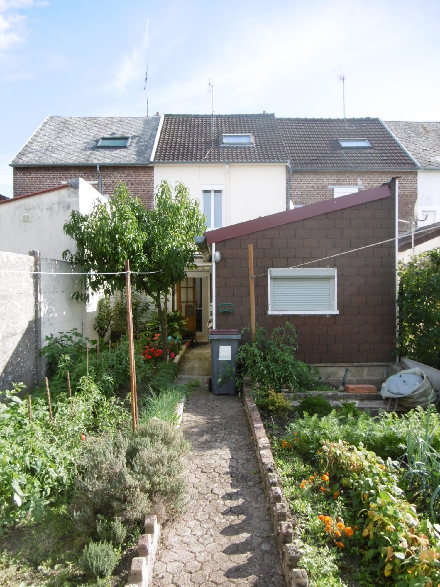 Disponible de suite, avec jardinet et garage 1VL, maison de ville env 70m² comp : entrée, cuisine meublée et équipée ouverte sur séjour, lingerie,...