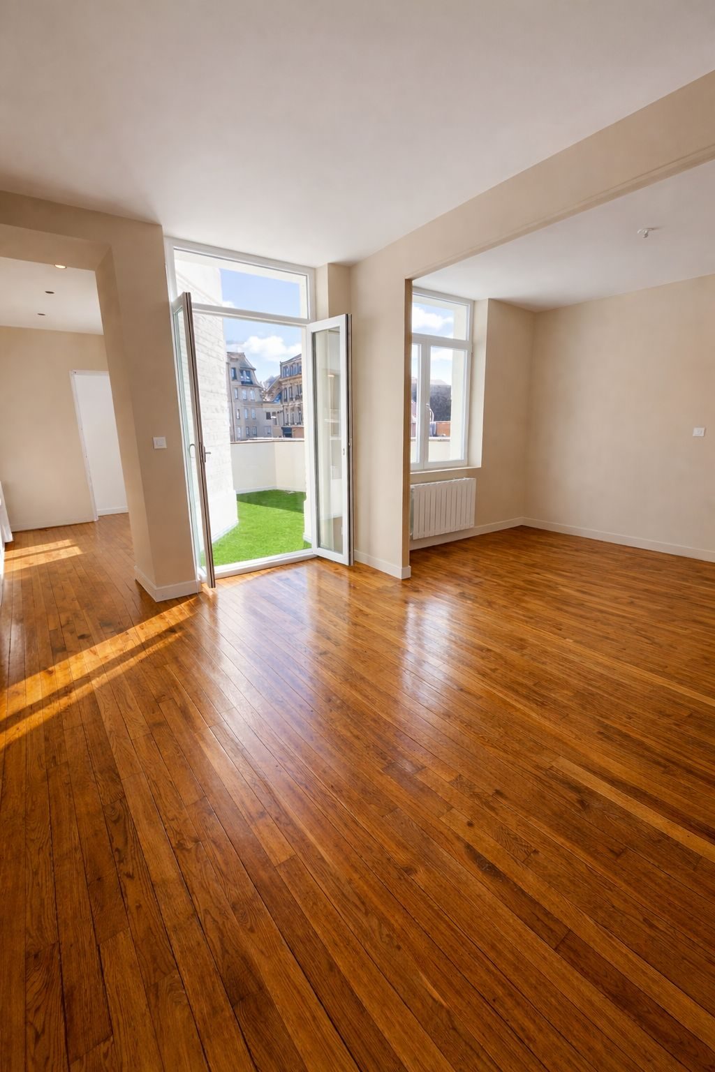 Disponible le 1er juillet, dans immeuble en retrait de rue principale, appt triplex neuf de haut standing env 80m² comp : cuisine meublée et équipé...