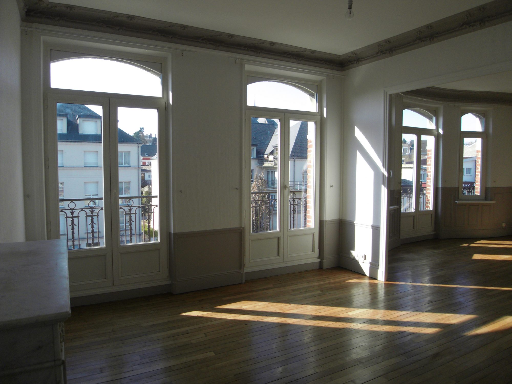 Le 3ème et dernier étage comprend un appartement de 87m² loué 557 € et d'anciennes chambres de bonnes avec arrivées d'eau et interphone pour 55m² ;