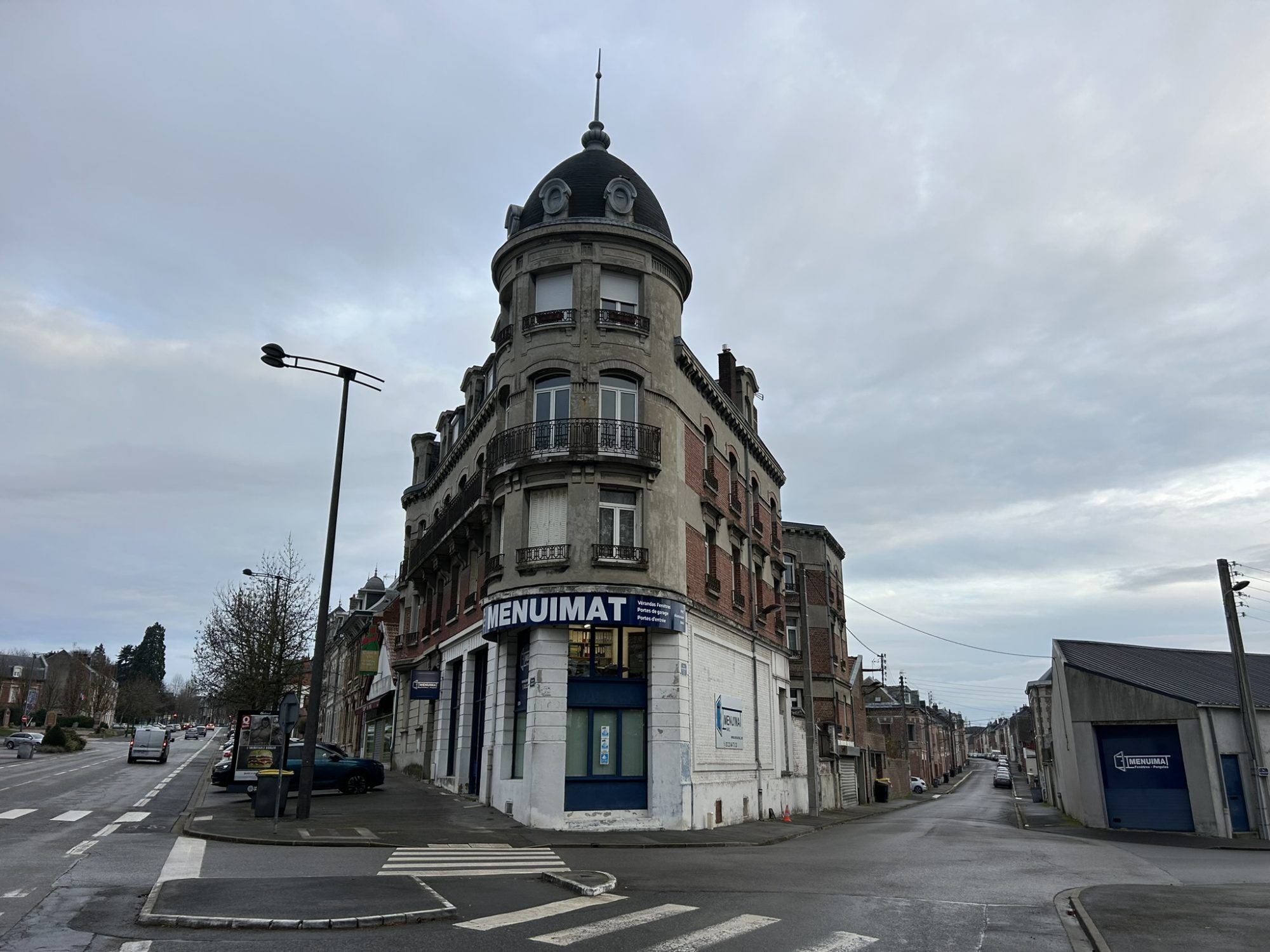 Le rez-de-chaussée comprend une surface commerciale avec mezzanine, cour couverte (réserve) et garage pour environ 250m², loué 1449 €/mois. Un appartement F3 de 98m² loué 660 €;