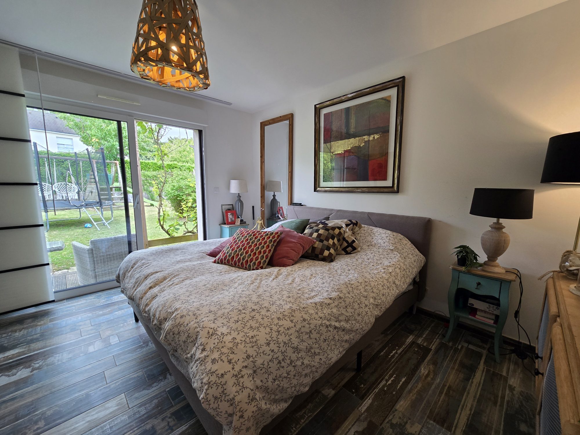 Entrée, salon-séjour avec cuisine équipée ouverte, trois chambres dont une avec dressing, salle de bains, lingerie, wc.