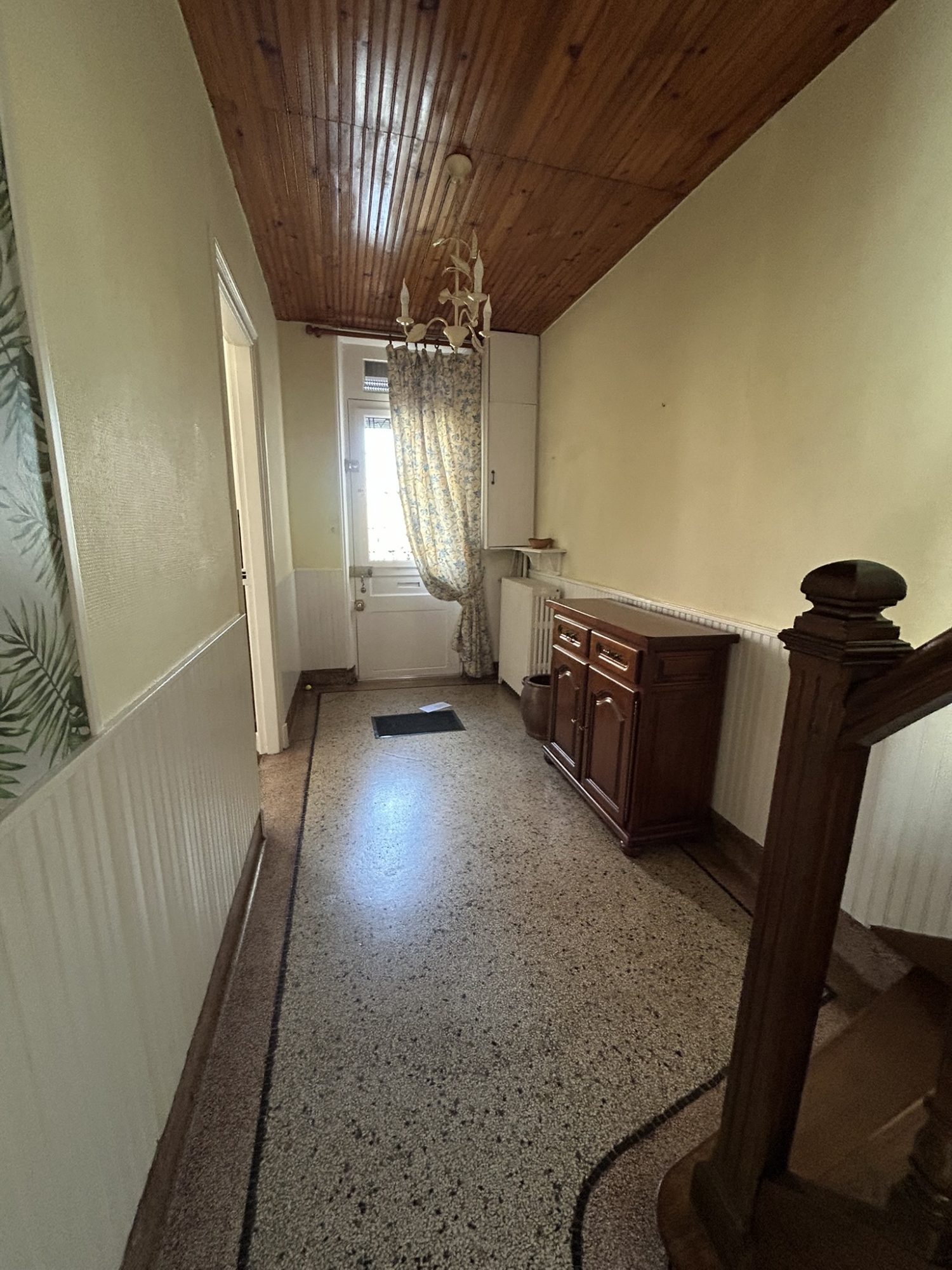 Elle comprend une grande entrée granito, séjour salon avec oriel, cuisine, une pièce et WC, lingerie avec grenier au-dessus au rez-de-chaussée.